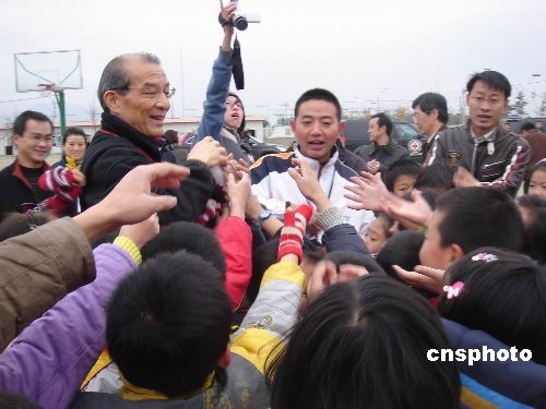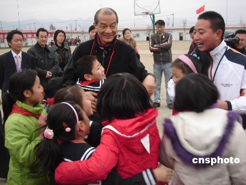 12月4日,海峡两岸红十字组织来到地震极重灾区德阳绵竹市天河小学看望受灾学生。