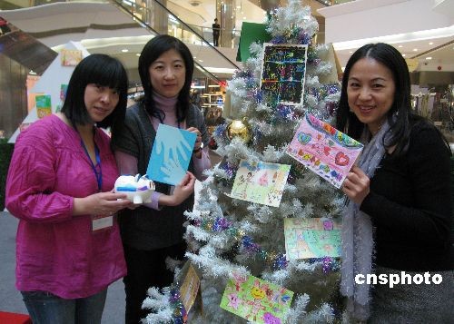 12月4日,一年一度沪上台湾学子最大规模的“爱心义卖会”在上海南京路拉开帷幕。活动主办方、拥有千名台胞子女的上海中芯学校,将连续4天义卖1300余件台湾孩童亲手制作的爱心礼物,预估可募集约8万元人民币善款,悉数捐赠上海市红十字会,用于救助大陆病童。图为上海台商太太展示自四川震区征集而来的台胞家庭手绘新年贺卡等,参加爱心义卖。中新社发 许晓青 摄