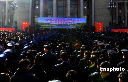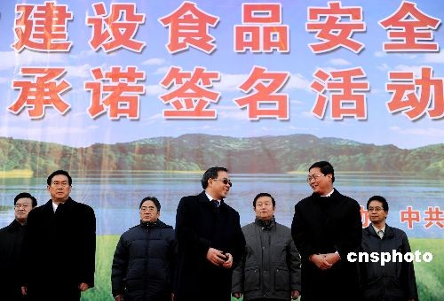 12月6日,石家庄市建设食品安全放心城市万人承诺签名活动仪式在该市文化广场举行,来自社会各界的上万群众在食品安全标语上签名。中共石家庄市委书记车俊在讲话中表示,该活动是石家庄正在开展的“吸取教训、转变作风、重复形象、科学发展”主题教育活动的重要内容,展示了石家庄市深刻吸取三鹿事件教训,重塑食品安全形象,建设食品安全放心城市的决心和信心。中新社发 廖攀 摄