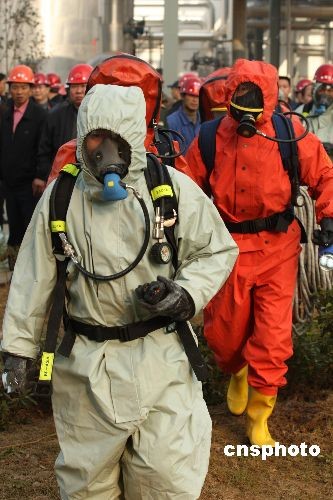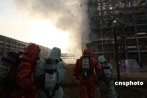12月10日上午8时左右,湖北省宜昌市南玻公司发生一起三氯氢硅泄露事故。经过当地消防、环保、安监等部门两个小时的紧张处置,险情被成功排除。目前,事故原因正在调查当中。 中新社发 方佩 摄