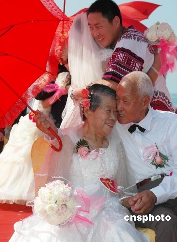 图:钻石婚夫妇三亚大秀恩爱