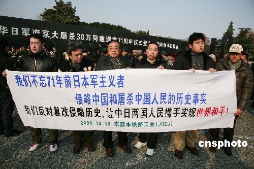 13日上午10时,凄厉的警报在南京城上空拉响,江苏省暨南京市各界代表以及海内外和平友好人士近5000人在侵华日军南京大屠杀遇难同胞纪念馆举行集会,悼念南京大屠杀30万同胞遇难71周年,日本和平友好人士应邀参加。中新社发 钟山 摄