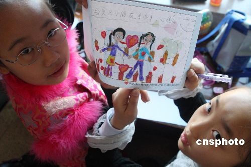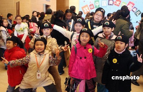新年即将到来之际,北京市千余名少年儿童来到中国美术馆参加第5届“我在中国美术馆画画儿”大型儿童美术活动,小朋友们在现场创作手绘贺年卡,并填写四川地震灾区小朋友的学校、班级、姓名,将贺年卡寄出,以表达首都小朋友对灾区孩子的问候和祝福。中新社发 钱兴强 摄
