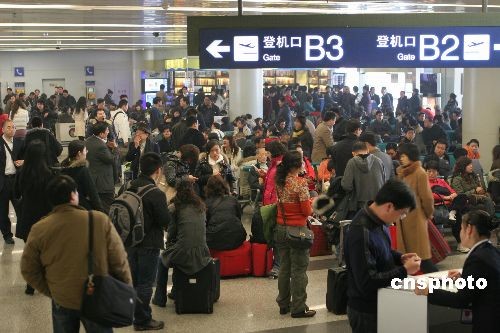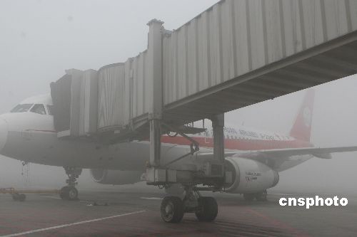 成都双流国际机场12月16日再度遭受浓雾天气袭击,机场被迫关闭3个多小时,直接造成109个进出港航班延误,其中出港74个,进港35个,并使18个出港航班被迫取消,导致近1万名出港旅客受阻于机场,不能按时飞往目的地。双流机场及时向全场发布了二级预警信号。中新社发 吕俊明 摄