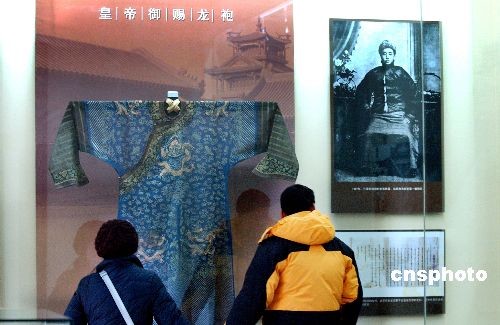 12月17日,奉系军阀张作霖的九龙袍等文物首次在沈阳张氏帅府博物馆展出。据馆方工作人员介绍,这是末代皇帝溥仪因张作霖剿匪有功而赏赐给他的。中新社发 罗澜 摄