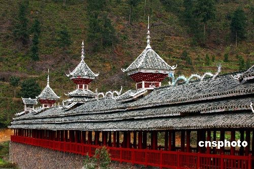 2008年末,中国国家地理杂志名为“天马行空——盘点世界十大最不可思议桥梁”,贵州侗族特色建筑“风雨桥”榜上有名。此外,还有杭州湾大桥(中国)、半坡大桥(韩国)、米卢大桥(法国)、哈德森波纹(新加坡)、翻滚桥(英国)、奥利维尔大桥(巴西)、千年桥(英国)、马格德堡桥(德国)、旧桥(意大利)。中新社发 彭年 摄
