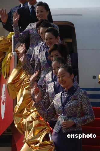 图:福州至台北直航空姐着新式服装上岗