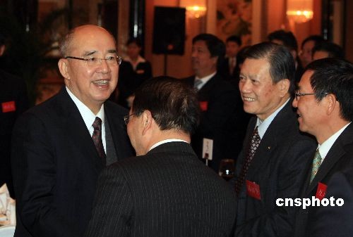 12月20日,中国国民党主席吴伯雄在上海出席第四届两岸经贸文化论坛,并与台商共进午餐。中新社发 汤彦俊 摄