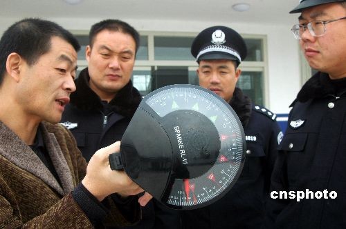 为了让人们度过一个欢乐祥和的新春佳节,12月20日,山东省郯城县公安部门邀请测爆人员携带“探雷器”,对辖区内非法生产烟花爆竹的村街进行全面探测排查。据介绍,“探雷器”名叫SPARKEYE远距离爆炸物探测仪,是通过物质特殊的分子振动原理探测到爆炸物所在位置的。中新社发 房德华 摄