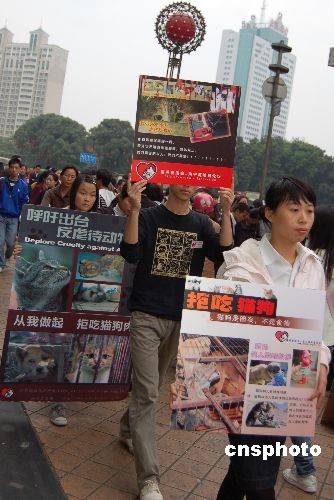 图:阻止猫狗被虐杀 南宁爱猫人士街头宣传