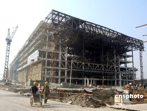12月28日,中国2010年上海世博会主题馆结构封顶。作为上海世博会的永久性场馆之一,主题馆在世博会期间将承担演绎、展示“城市,生命”、“城市,星球”和“城市,人”的主题,世博会后将转为标准展览场馆。中新社发 井韦 摄