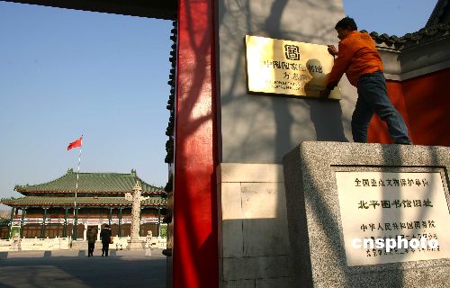 1月4日,中国国家图书馆方志馆正式挂牌。国图方志馆位于文津街7号,与原有的国图古籍馆同址。在方志馆临琼楼一层,还将新开设地方文献第一阅览室和地方文献第二阅览室,专门为读者提供地方文献资料服务。中新社发 富田 摄