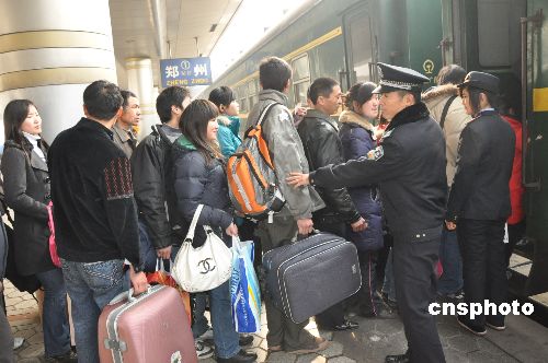 1月5日,针对今年春运客流情况,郑州铁路局暨郑州火车站提前启动2009年春运。为做好今年的春运工作,郑州铁路局提前部署安排,精心制定临客车底整修方案,严格临客列车的质量标准及验收检查,目前28组临客车底已经全部整备完毕。从当日开始,临客车将按照春运节前开行方案陆续投入使用。中新社发 刘书亭 摄