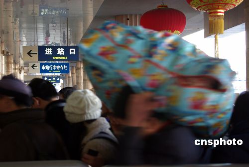 2009年1月5日,受金融危机影响,在北京的部分打工人员纷纷提前返乡,形成一股早到的“返乡潮”,客流高峰提前到来。中新社发 九州 摄