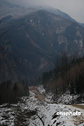 1月5日,新年伊始,四川北川迎来了2009年到第一场雪,由于大雪封山,擂禹路海拔1500米的冒火山已被冰雪吞没,维系北川关内12个羌族、藏族乡镇,6万多名群众生产生活的“生命线”再次因风雪阻断。目前,北川交通护路队进入擂禹路开始抢通,预计10日能够抢通。中新社发 胥辉 摄