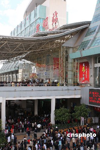 1月7日,昆明火车站站前广场聚集等待进站的人客流。随着春节的临近,昆明火车站旅客人数明显增加,在昆明的农民工和学生纷纷来到昆明火车站购票乘车提前回家过年。中新社发 刘冉阳 摄