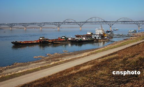 1月13日, 长江九江段几艘大驳船搁浅。当日,长江九江段水位仅为8.60米, 长江九江段水位比去年12月上旬下降了5米左右,接近历史最低水位。目前,长江水位仍继续走低, 长江航道部门对吃水超过4米的船只做出不允许通过的规定。中新社发 胡国林 摄