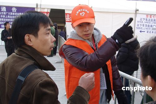 1月15日,为从容应对上海站春运大客流到来,上海铁路局团委加强路地联合,从全局及地方院校招募千余名青年志愿者,经动员培训后迅速上岗,为旅客提供咨询等服务。中新社发 陆应果 摄