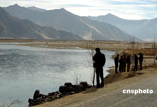 一月十七日,拉萨机场路,一辆载重货车侧翻到拉萨河边。目前,从拉萨市区到贡嘎机场道路为双向两车道公路,大部分路段限制时速七十公里、弯道四十公里。据悉,拉萨机场高速路有望今年开工建设,将结束西藏没有高速公路的历史。中新社发 廖攀 摄