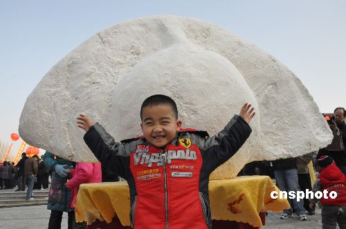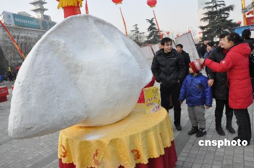 1月18日是农历新春小年,郑州市“2009欢乐购物过大年”活动在绿城广场举行,1.8米长国内最大的实物饺子亮相郑州市绿城广场。中新社发 刘书亭 摄