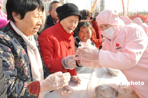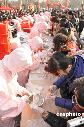 1月18日是农历新春小年,郑州市“2009欢乐购物过大年”活动在绿城广场举行,2009人在郑州市绿城广场一同包饺子并现场制作品尝。中新社发 刘书亭 摄