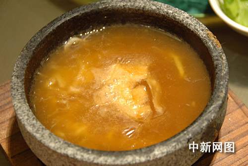 这道用鱼翅、高汤焗制出来的菜肴,这道菜用料高档,味香汁浓,营养丰富,极具食相,吃后齿颊留香,是该菜馆的招牌菜式之一。