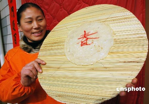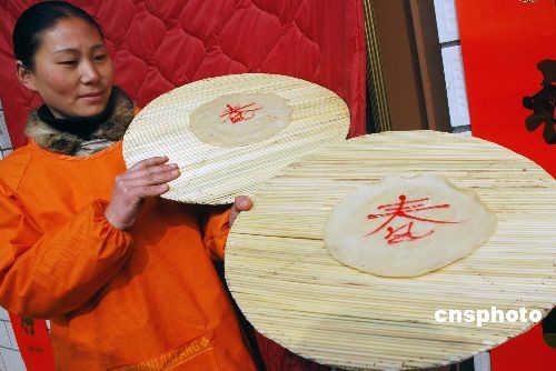 2月4日,河南汤阴城关镇小北关村一农户展示制作的春饼。当日是农历二十四节气中的立春,俗称“打春”,吃春饼是中国立春的主要习俗。春饼用面粉擀成圆形的饼,经烙制或油煎而成。中新社发 常中正 摄