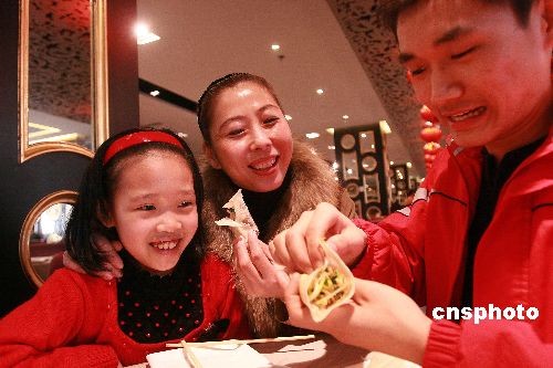 2月4日是中国农历新年的首个节气—立春,立春俗称“打春”,吃春饼是中国立春的主要习俗。按照老北京的民俗把吃春饼称为“咬春”,京城各家经营春饼的餐馆生意异常红火。中新社发 陈晓根 摄