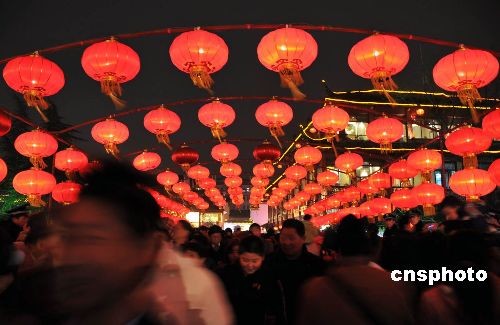 2月7日,元宵佳节临近,南京夫子庙彩灯景色迷人。当晚,2009南京夫子庙元宵灯会全面试灯,50多组来自全国各地的顶级灯彩全部点亮,将夫子庙及秦淮风光带装扮成灯的世界,吸引了数十万市民和游客观看。中新社发 胡高华 摄