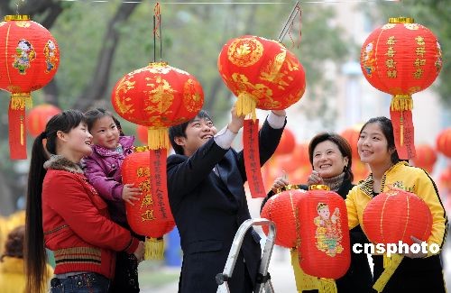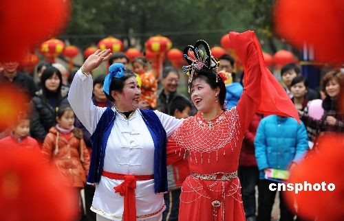 2月8日下午,安徽合肥市瑶海区绿苑社居委组织辖区居民齐聚一堂,共庆佳节。家家户户自发地送出了写有节日祝福语的元宵灯笼挂在社区里,多才多艺的社区群众还拿出了自己的拿手文艺节目,共同上演了一台精彩的社区元宵喜乐会。中新社发 解琛 摄
