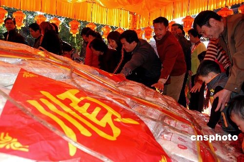 2月9日,元宵节澎湖特有的“乞龟”民俗在福建泉州天后宫举行盛大的“平安乞龟”活动,为两岸乡亲送上元宵祝福。中新社发 傅丹丹 摄