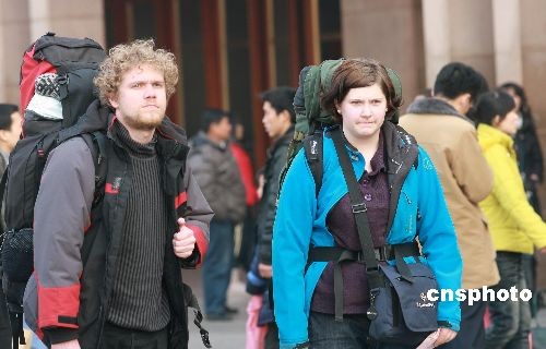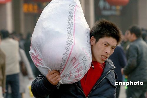 2月9日,北京站出站口处的客流不断。当日是农历正月十五,铁道部预测,从9日起,铁路客流将继续走高,形成节后春运的第二次客流高峰。中新社发 郑雄增 摄