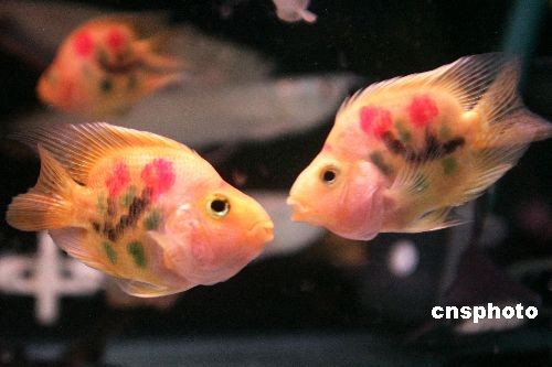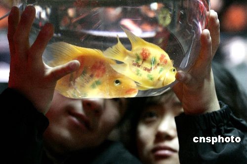2月13日,情人节到来之际,北京许多商家推出种类繁多的情人节商品。图为在北京一花鸟鱼虫市场,店主将热带鱼全身用激光纹身的方法纹上玫瑰花,以吸引顾客的眼球。中新社发 富田 摄