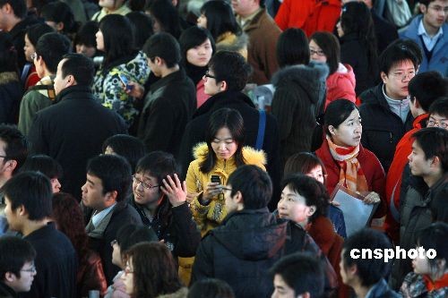 2月15日,北京国展举行大型招聘会,约1.3万个岗位虚位以待。众多求职者齐聚会场查阅招聘资料,选择适合自己的工作岗位。据了解,此次招聘会共有770家招聘企业参展,以中小企业居多,在提供的1万多个岗位中,销售岗位占四成。中新社发 郑雄增 摄