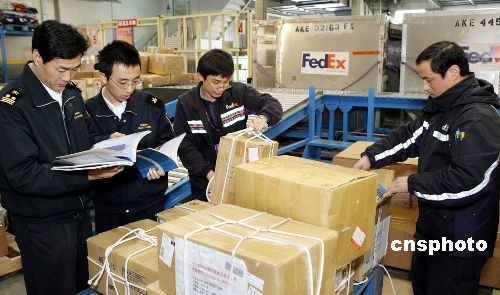 近日,第24届世界大学生冬季运动会代表团首批物资运抵北京。首都机场海关按照大冬会物资通关预案办理了转关手续,并且派专人与哈尔滨海关协调联系,保障大冬会物资能够在最快时间抵达哈尔滨大冬会体育代表团驻地。中新社发 雷虹 摄