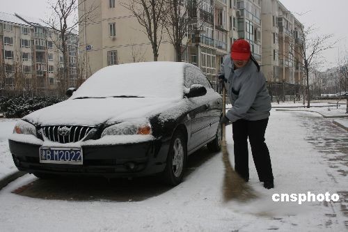 2月18日,农历雨水节气,天津当日小到中雪,雪后起风,气温下降,城内堆满积雪。2月17日晚,夜幕下的津城迎来今年的第一场雪。中新社发 金立冬 摄