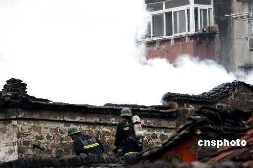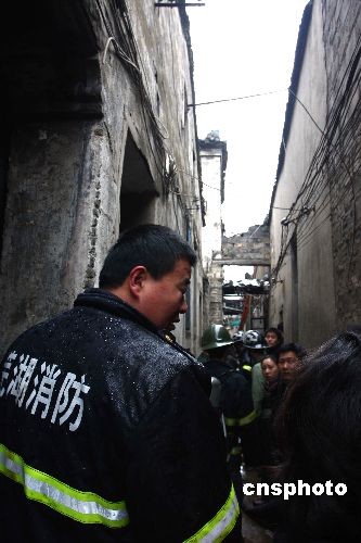 2月18日下午1时30分左右,安徽芜湖市西内街一居民房发生火灾。芜湖消防部门接到报警后迅速赶往火灾现场扑救,公安民警紧急疏散附近居民。目前尚未接到人员伤亡报告,火灾原因在调查中。中新社发 水从泽 摄