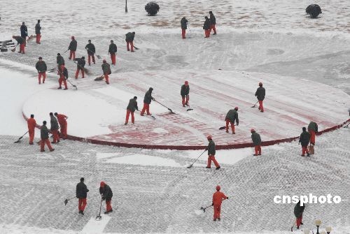 2月19日,东北特钢集团大连基地员工们在清除积雪。当日,辽宁大连市再次降雪。两天来,大连市各单位及广大市民,以雪为令,及时清除责任区路面积雪,保障道路畅通和市容整洁。中新社发 刘德斌 摄