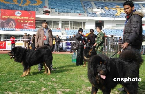 2月21日,由中国工作犬管理协会主办的2009年中国藏獒展评大赛在南通体育会展中心开展。来自全国各地两千余只藏獒参加了比赛,其中被誉为“江南獒王”来自苏州海纳苑藏獒基地的炭火也参加了比赛。据了解,主办方举办此项比赛旨在通过展评大赛保护中国藏獒资源,提倡文明养犬,规范养犬。中新社发 朱子寒 摄