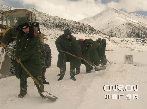 2月25日下午15时许,受持续降雪和雪崩影响,川藏公路西藏境内安久拉山至牛踏沟路段交通中断。担负川藏公路养护保通任务的武警交通四支队紧急启动抢险预案,出动机车兵力赶赴受灾现场全力抢通。目前,官兵正奋战在抢通一线。(记者郭海涌、通讯员徐勇、刘云报道)