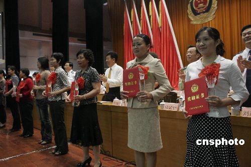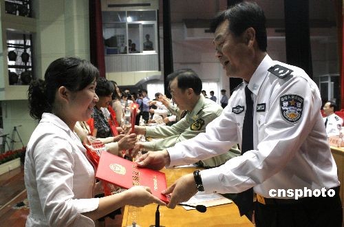 2月26日,广西公安厅在南宁为十余名优秀警嫂颁奖,以表彰其克服各种困难和压力支持丈夫做好公安保卫工作。2月25日至26日,广西全区公安工作会议在南宁召开。中新社发 王刚 摄