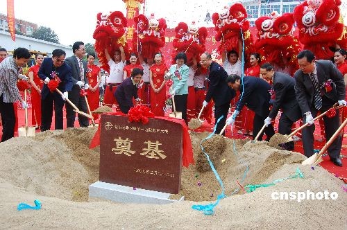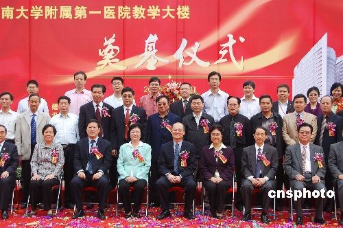 二月二十八日上午,暨南大学附属第一医院教学大楼奠基,国务院侨办副主任赵阳与广东省副省长雷于蓝出席奠基典礼。中新社发 柯小军 摄