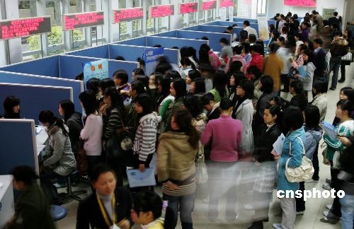 二月二十八日,福州举办“女性就业专场”招聘会,不料竟有许多男士也远道赶来“抢”女同胞的工作岗位。中新社发 杨婀娜 摄