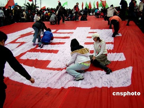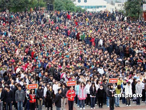 3月1日,重庆市云阳县组织万余名三峡移民等在新县城1500余级的登云梯开展全民健身登梯活动,倡导健康生活方式。中新社发 刘兴敏 摄