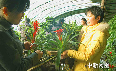 3月4日,甘肃省玉门市境内的日光温室花卉棚里,市民选购绚丽多彩的鲜花,用来装点居室,或走亲访友。玉门市位于甘肃省西端,随着天气转暖,这里的日光温室里,各种鲜花争相开放。方圆 摄