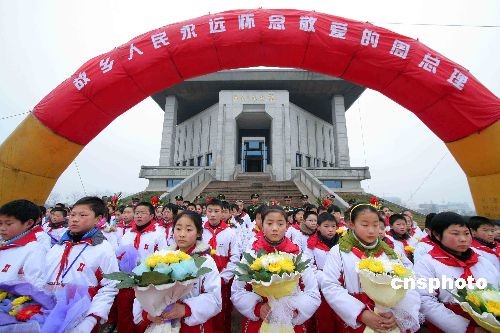 3月5日,当日是周恩来诞辰111周年纪念日,周恩来故乡——江苏省淮安市楚州区数千社会各界人士齐聚周恩来纪念馆广场,冒着绵绵细雨,缅怀敬爱的周总理。中新社发 李正林 摄