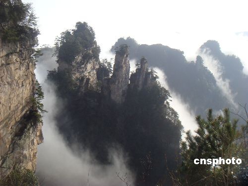 3月14日,久雨初晴的世界自然遗产张家界武陵源风景名胜区出现飘渺若仙的云海美景,数千名中外游客在天子山、黄石寨等景点饱览了这一自然奇观。中新社发 邓道理 摄