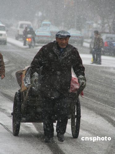 3月17日,新疆阿勒泰地区普降小到中雪,伴有3-5级的西北风,气温下降8度左右,部分地区还出现了雨夹雪天气。中新社发 唐晓波 摄