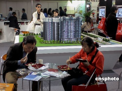 北京地产市场沉寂一冬迎来三月阳春,看房客们开始成群结队热闹行动。有楼盘推销商向可能出手买房者赠送中午盒饭,期望买卖做成。中新社发 贾国荣 摄
