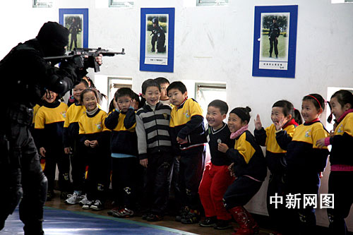图:外来务工人员子弟在沪感受特警雄风——中新网